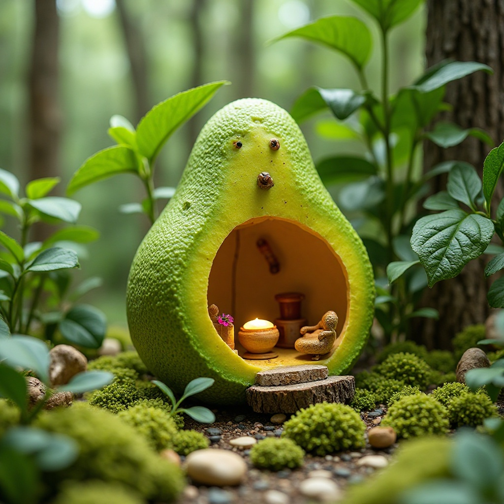 Miniature World Elements: a miniature avocado-shaped house with an open living space