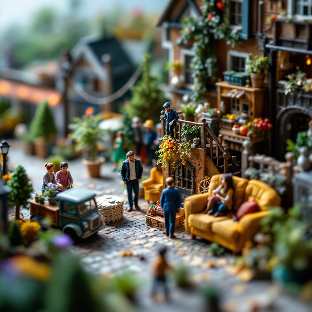 Miniature World Detail: realistic textures, precision lighting, artisan charm